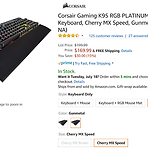 [업데이트] 가격이 $174.99 한국 직배송비 $16.43 디파짓 $19.14 로 변경되었습니다.커세어의 기계식 키보드, Corsair K95 RGB 플래티넘 스피드축 건메탈 컬러 모델 할인정보입니다.갈축에 블랙컬러 모델이 $169.99에 나왔었는데, 이번에 회축이 좋은 가격에 나왔습니다.적축에서 스트로크 깊이를 줄인 축이라고 생각하면 됩니다. 커세어의 최상급 모델이라고 보면됩니다.camelcamelcame.com 낙타 기록상 최저가구요, 미국내 무료배송에 한국 직배송은16.43불부터 시작하며합니다. 150불 초과 상품이기 때문에 디파짓 18.64불 추가되며 목록통관 대상이기 때문에 디파짓은 60일 내로 환불되겠죠. (대략 한달내 환불)국내최저가는 287,000~338,000원입니다. 아마존 보러가기 ..