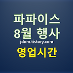 파파이스 8월 행사와 매장별 파파이스 영업시간 배달 시간 확인하는 방법을 알아봅니다.(이미 파파이스 7월 행사로 포스팅 했었는데 8월에도 행사내용이 변동이 없어요)파파이스 메뉴와 제휴할인등이 궁금하시면 아래글을 참고하세요.2017/06/10 - 파파이스 6월 행사, 파파이스 영업시간 매장별 빠짐없이 정리6월에 정리한 글인데 메뉴를 잘 정리해뒀습니다. 예전에는 파파이스가 순위안에 드는 핫한 치킨집이었는데 요즘은 쟁쟁한 치킨 브랜드에 밀리고 있네요. 그래도 곳곳에 건재해 있는 파파이스를 보며 반가움이 앞서네요.파파이스 8월 행사는 파파이스에서 매달 홈페이지를 통해 공지하는 할인 행사입니다. 8월에는 7월부터 이어지는 3개의 이벤트 행사가 있습니다. 파파이스 8월 행사를 보니 8월에는 너겟테이크아웃팩과 스윗커..