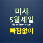미샤 5월세일 빠짐없이 정리 5월 들어 서로 경쟁적으로 세일 및 이벤트를 진행하고 있습니다. 아무래도 가정의 달 5월에 많은 이벤트들이 있다보니 큰 대목인것 같네요. 곧 다가올 여름에 대비하라고 썬크림 1+1 을 많이 하네요. 오늘은 미샤 5월세일 정보를 빠짐없이 정리해 봅니다. 먼저 50%세일과 1+1부터 정리해볼께요. 세일 종류가 작은 것 같지는 않은데 일정금액 이상 구입시 제공하는 구매 사은품이 너무 약해서 홈페이지에 많은 성토가 있습니다. 미샤를 사랑하시는 분들의 실망이 컸나보네요. 다른 세일정보도 확인하세요. 2017/05/02 - 에뛰드하우스 5월세일 알아보고 가세요2017/05/02 - 아리따움 5월 세일 빠짐없이 정리2017/05/02 - 토니모리 5월 세일 빠짐없이 정리2017/05/02..